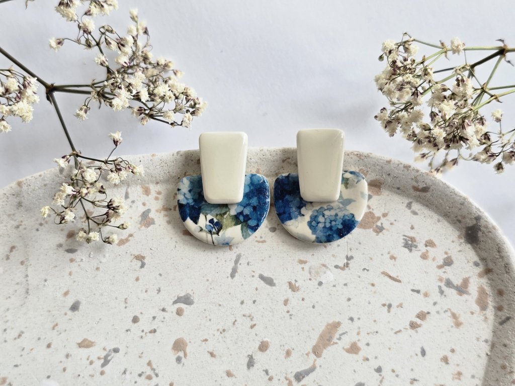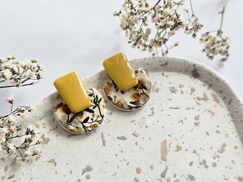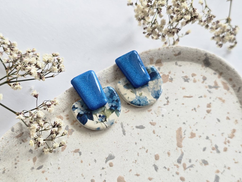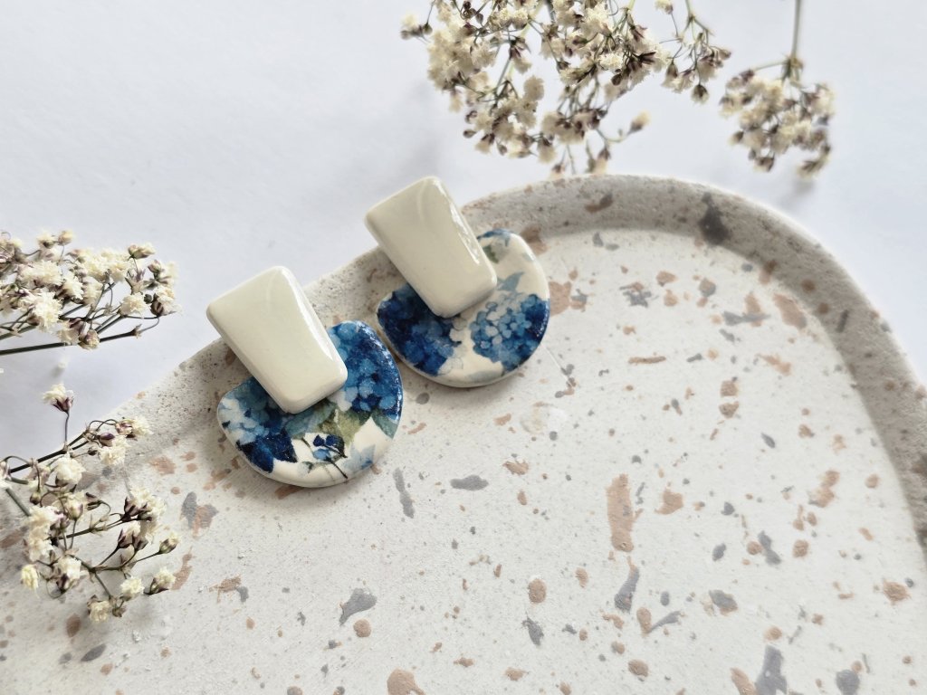 Spodná časť náušníc je vytvorená z polymérovej hmoty s aplikovaným vzorom pomocou dekor transferového papiera. Povrch je zafixovaný lesklým lakom určeným priamo na polymérovú hmotu, ktorý dodáva odolnosť a krásny lesk.