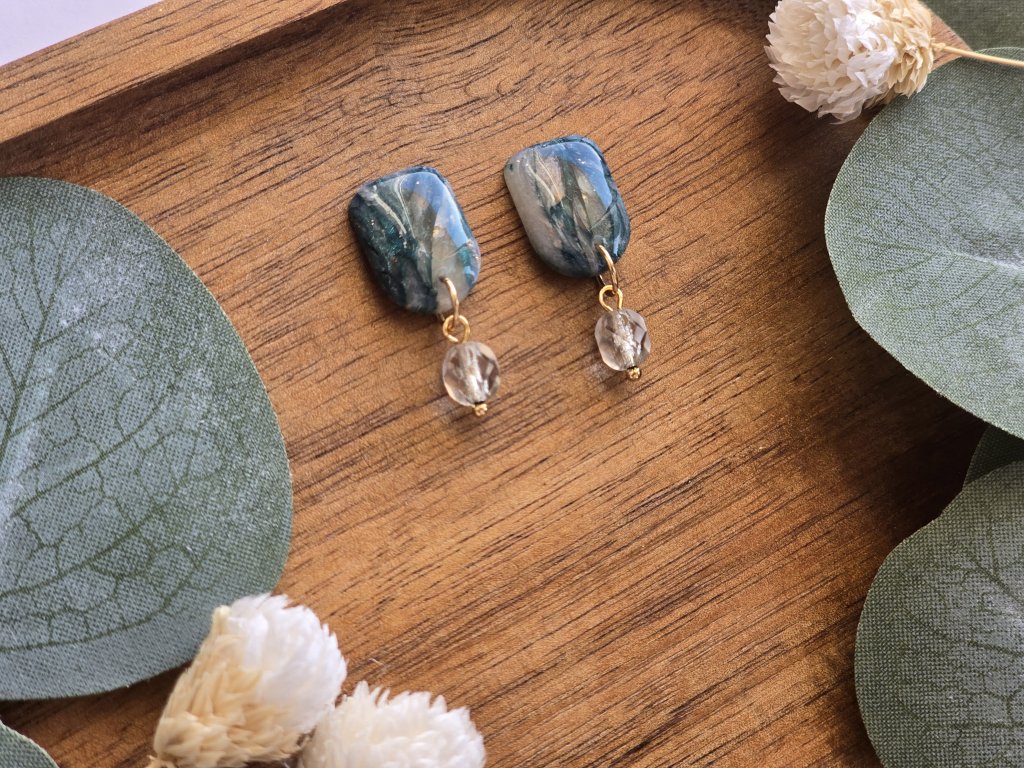 materiál: polymérová hmota, komponenty z chirurgickej ocele (ideálne aj pre citlivú pokožku).Brúsená korálka