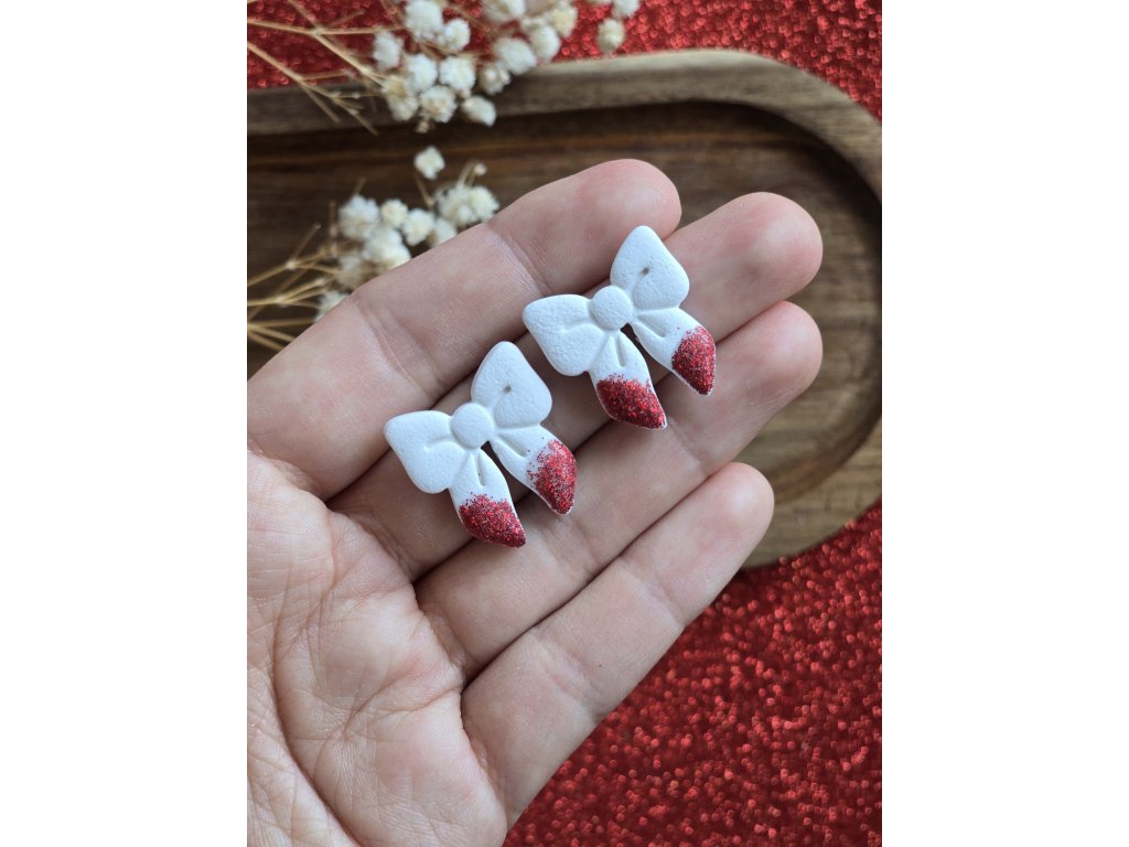 biele s červeným trblietaním