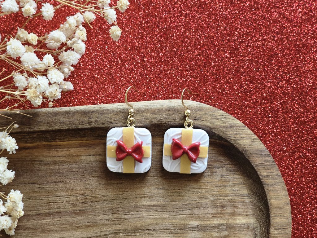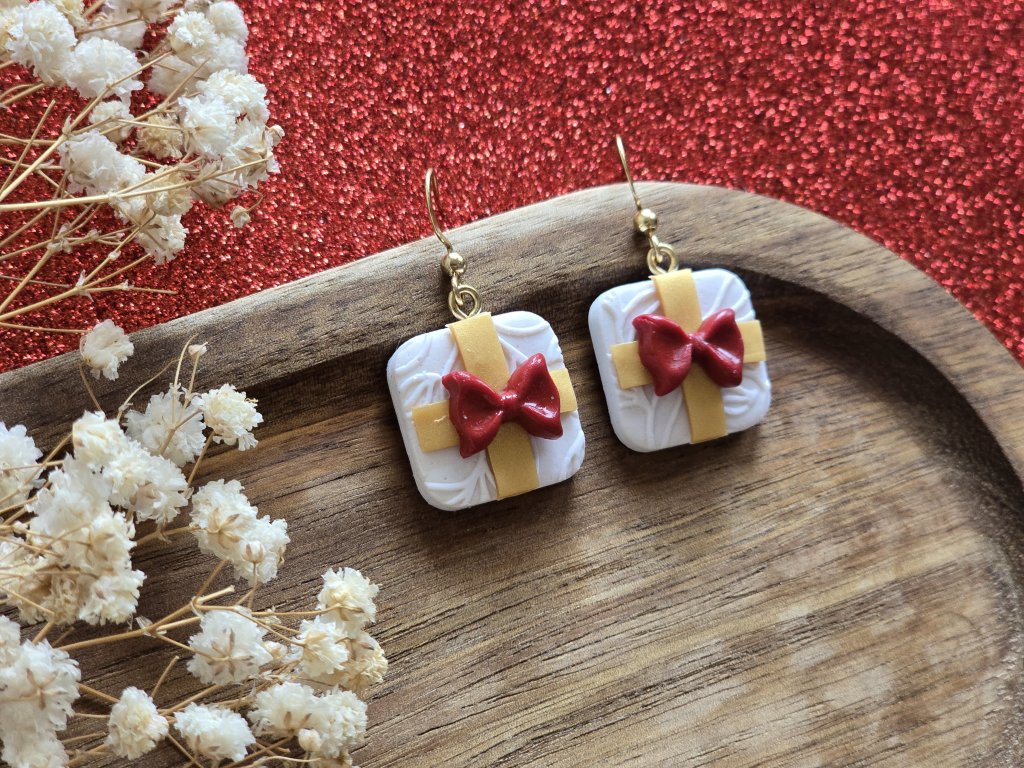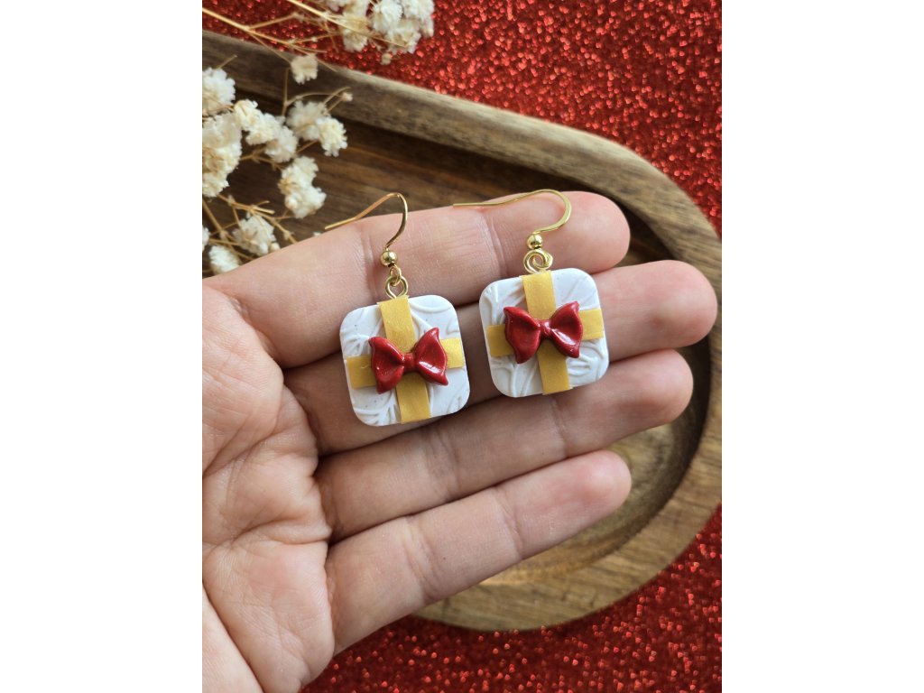 farebnosť: biela so zlatou doplnené o červenú mašľu.